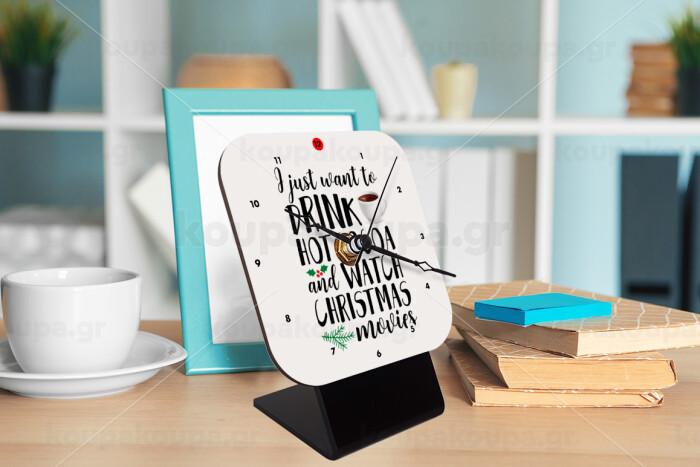 I just want to drink hot cocoa and watch christmas movies, Quartz Wooden table clock with hands (10cm)