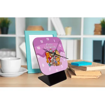 Merry Christmas Cats, Quartz Wooden table clock with hands (10cm)