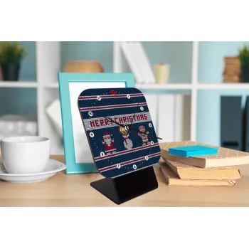 Merry christmas knitted, Quartz Wooden table clock with hands (10cm)