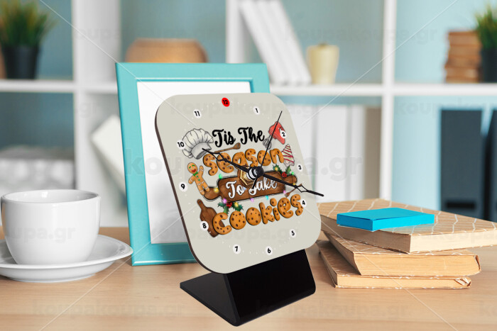 Tis The Season To Bake Cookies, Quartz Wooden table clock with hands (10cm)