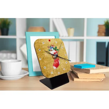 Xmas boot, Quartz Wooden table clock with hands (10cm)