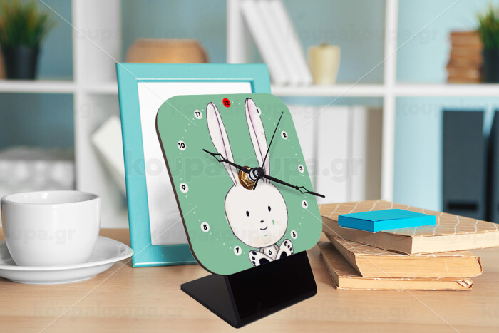 Ο λαγός του πάσχα, Quartz Wooden table clock with hands (10cm)