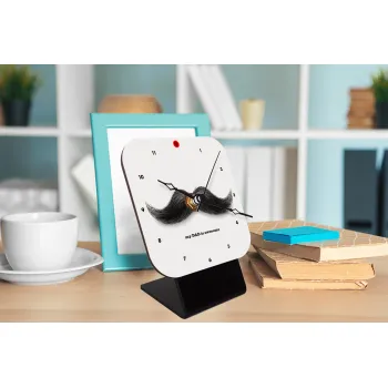 Ο καλύτερος μουστακαλής του κόσμου!!!, Quartz Wooden table clock with hands (10cm)