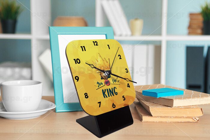Dad you are the King, Quartz Wooden table clock with hands (10cm)