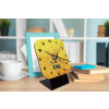 Quartz table clock made of wood. The set includes the clock and its base, the mechanism, and the installation instructions.