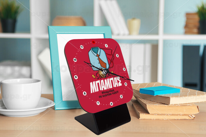 SUPER ΜΠΑΜΠΑΣ, Quartz Wooden table clock with hands (10cm)