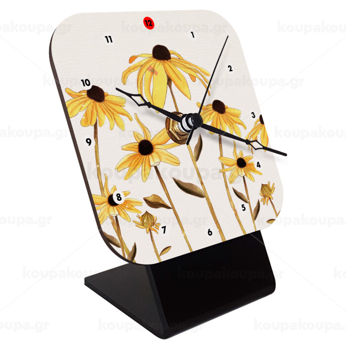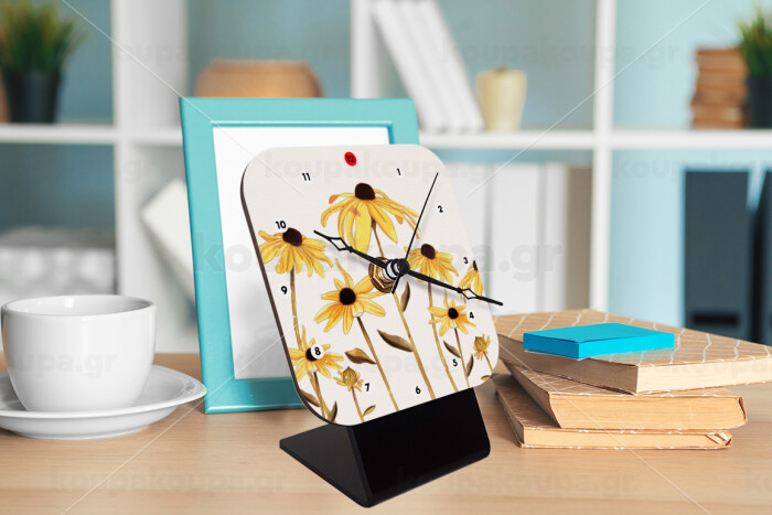 Daisies flower, Quartz Wooden table clock with hands (10cm)