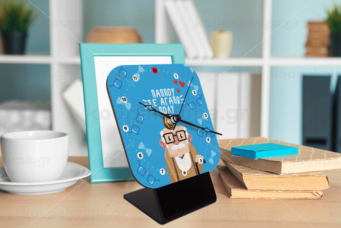 Παππού σε αγαπώ πολύ!, Quartz Wooden table clock with hands (10cm)