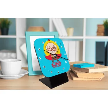 To my best Super Grandpa!, Quartz Wooden table clock with hands (10cm)