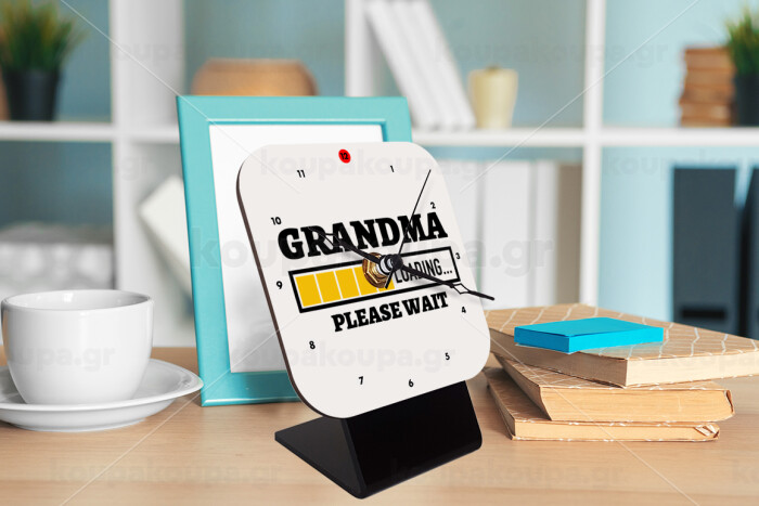 Grandma Loading, Quartz Wooden table clock with hands (10cm)