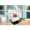 Quartz table clock made of wood. The set includes the clock and its base, the mechanism, and the installation instructions.