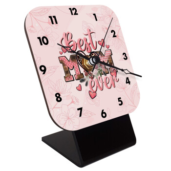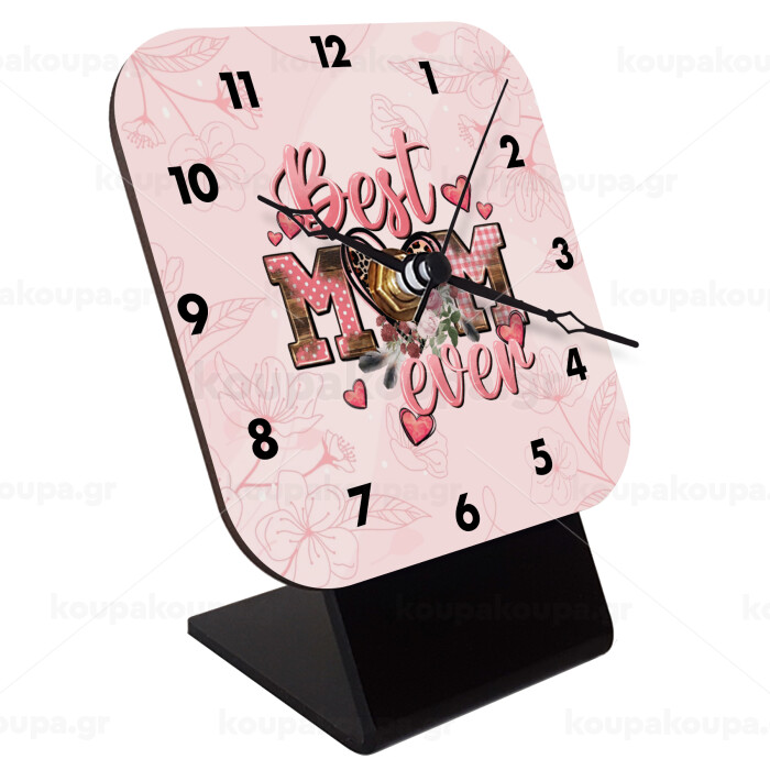 Best mom ever Mother's Day, Quartz Wooden table clock with hands (10cm)
