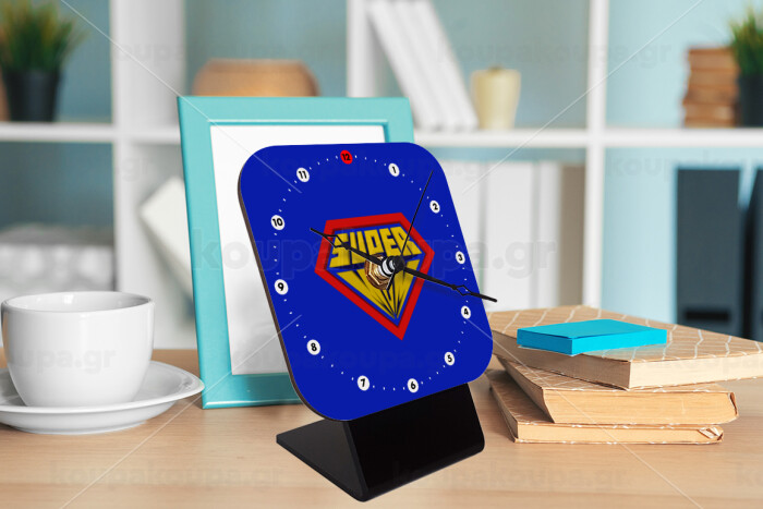 Super Mom 3D, Quartz Wooden table clock with hands (10cm)