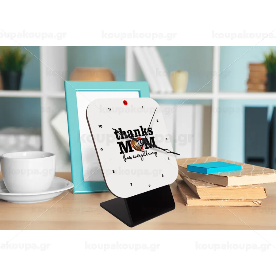 Thanks mom for everything, Quartz Wooden table clock with hands (10cm)