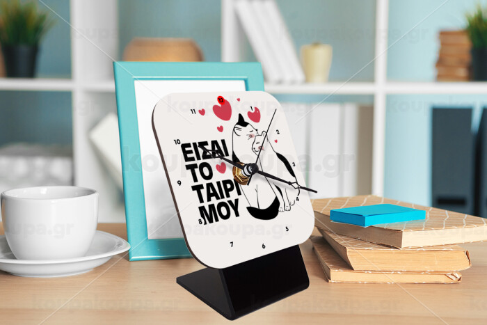 Είσαι το ταίρι μου, Quartz Wooden table clock with hands (10cm)
