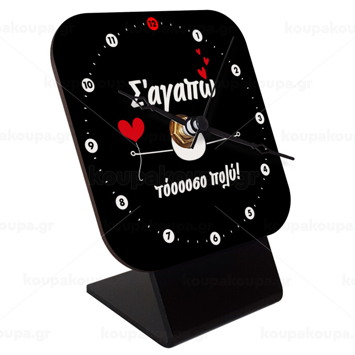 Σ΄αγαπώ τόοοοσο πολύ (Αγόρι)!!!, Quartz Wooden table clock with hands (10cm)
