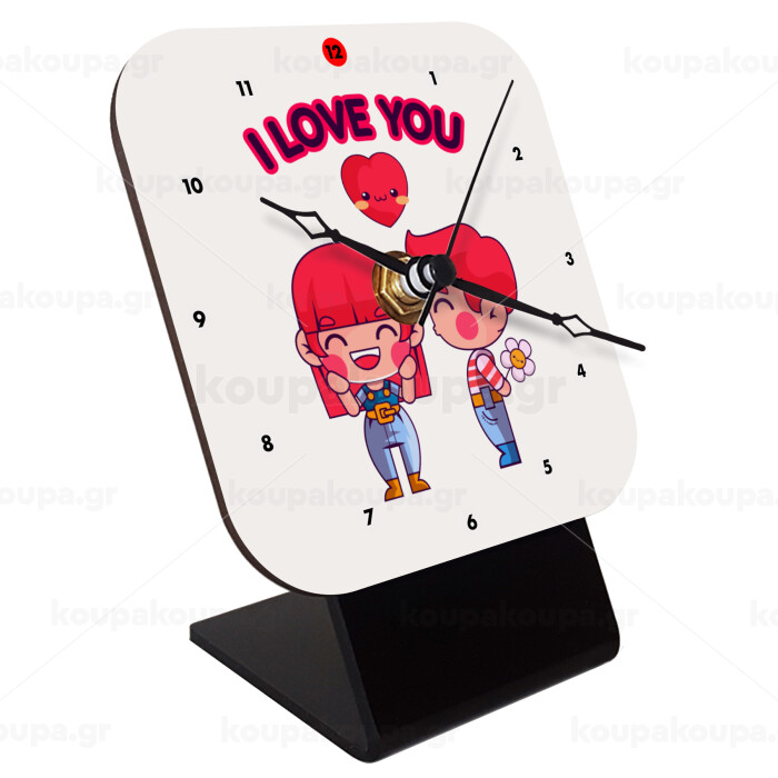 Couple, I love you, Quartz Wooden table clock with hands (10cm)