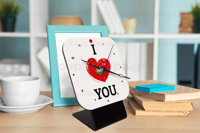 I Love You, Quartz Wooden table clock with hands (10cm)