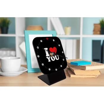 I LOVE YOU, Quartz Wooden table clock with hands (10cm)
