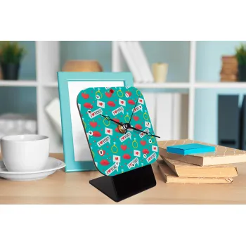 I Love You hearts rings & kiss pattern, Quartz Wooden table clock with hands (10cm)