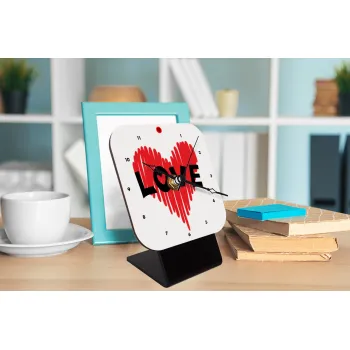 I Love You red heart, Quartz Wooden table clock with hands (10cm)