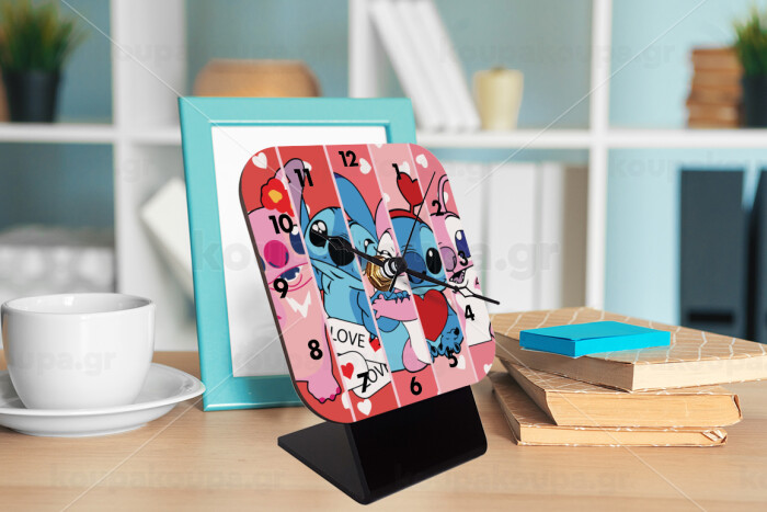 Lilo & Stitch Love, Quartz Wooden table clock with hands (10cm)