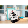 Quartz table clock made of wood. The set includes the clock and its base, the mechanism, and the installation instructions.