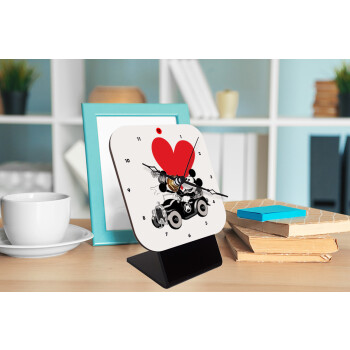 Mickey & Minnie love car, Quartz Wooden table clock with hands (10cm)