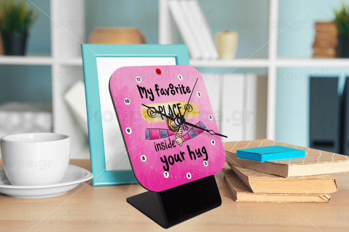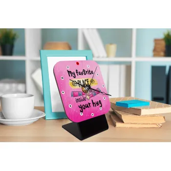 My favorite place is inside your HUG, Quartz Wooden table clock with hands (10cm)
