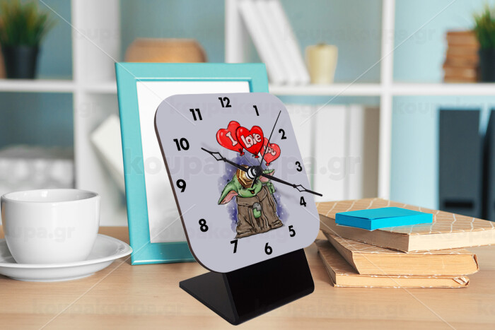 Yoda, i love you, Quartz Wooden table clock with hands (10cm)