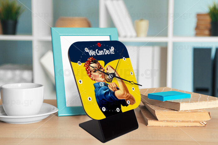 Rosie we can do it!, Quartz Wooden table clock with hands (10cm)