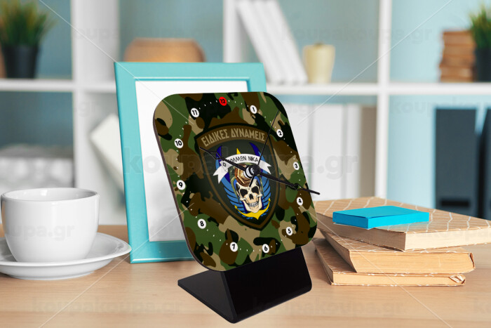 Hellas special force's, Quartz Wooden table clock with hands (10cm)