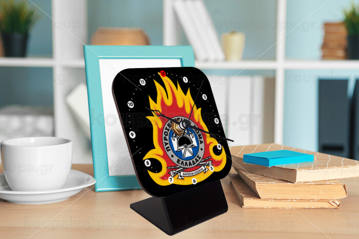 Πυροσβεστικό σώμα Ελλάδος σκούρο, Quartz Wooden table clock with hands (10cm)
