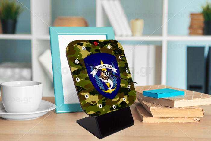 Hellas special force's shark, Quartz Wooden table clock with hands (10cm)