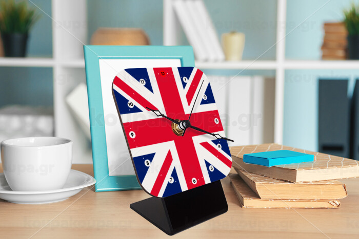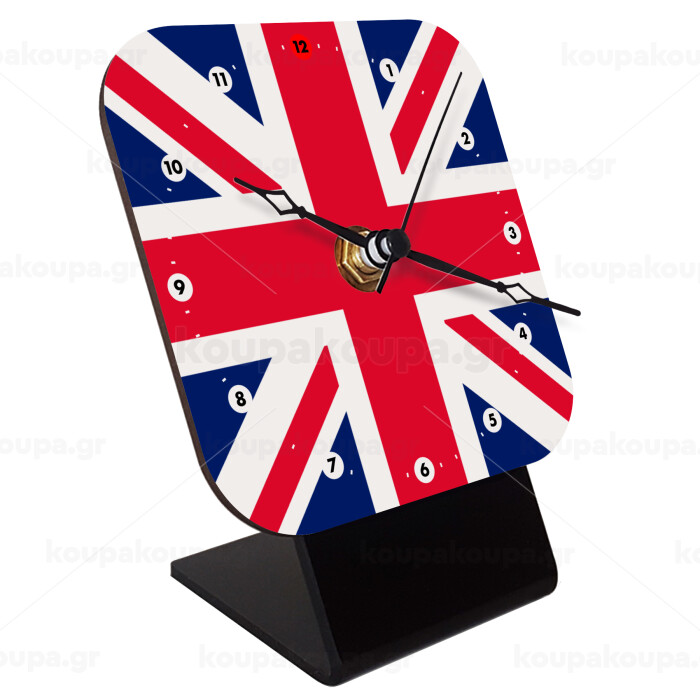 England flag, Quartz Wooden table clock with hands (10cm)