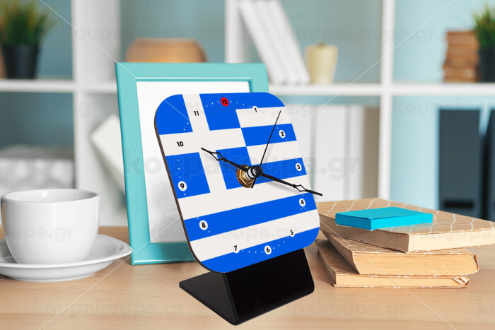 Greece flag, Quartz Wooden table clock with hands (10cm)