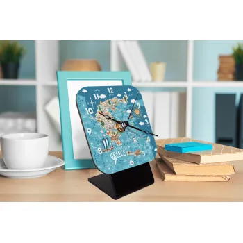 Greek map, Quartz Wooden table clock with hands (10cm)