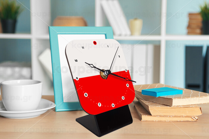 Poland flag, Quartz Wooden table clock with hands (10cm)