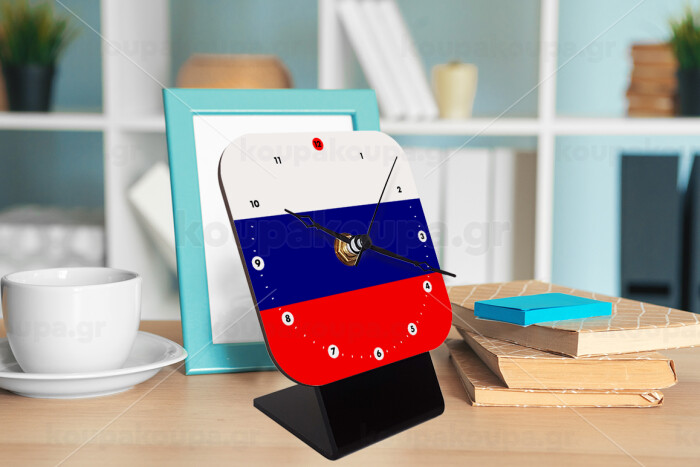 Russia flag, Quartz Wooden table clock with hands (10cm)
