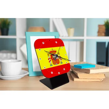 Spain flag, Quartz Wooden table clock with hands (10cm)