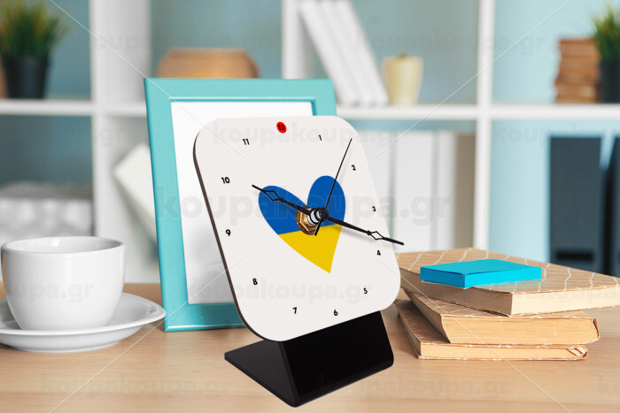 UKRAINE heart, Quartz Wooden table clock with hands (10cm)