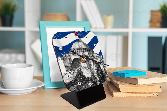 Αγία Σοφιά Ελληνική σημαία, Quartz Wooden table clock with hands (10cm)