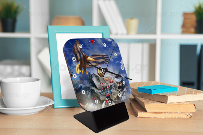 25η Μαρτίου 1821 Εθνική Επέτειος, Quartz Wooden table clock with hands (10cm)