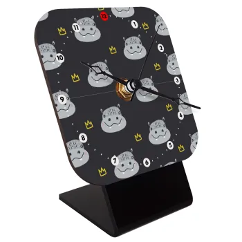 Hippo, Quartz Wooden table clock with hands (10cm)