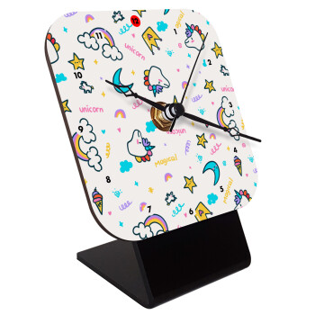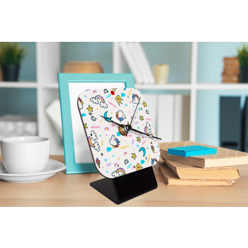 Unicorn pattern white, Quartz Wooden table clock with hands (10cm)