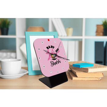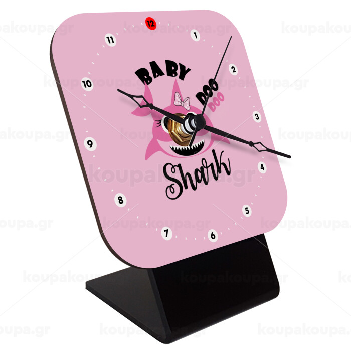Baby Shark (girl), Quartz Wooden table clock with hands (10cm)