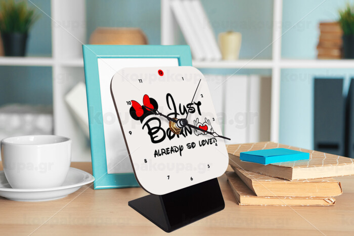 Just born already so loved, Quartz Wooden table clock with hands (10cm)