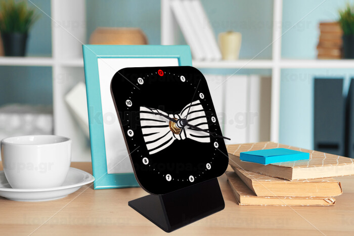 Bow tie, Quartz Wooden table clock with hands (10cm)