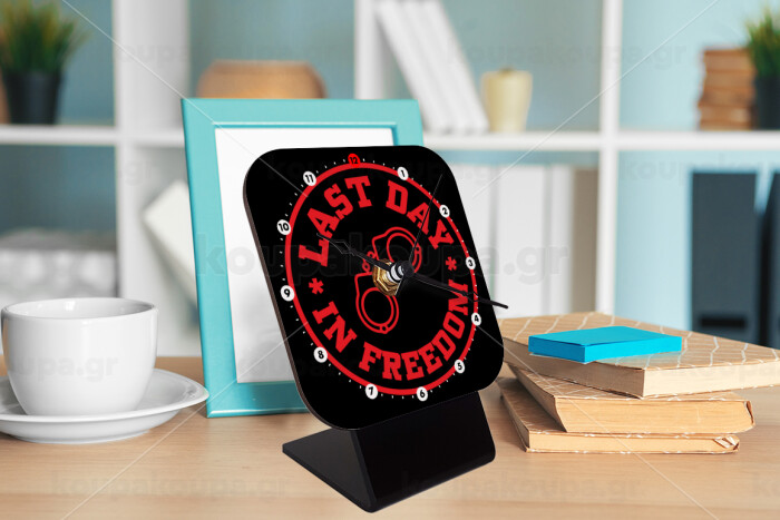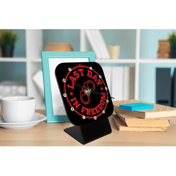 Last day freedom, Quartz Wooden table clock with hands (10cm)