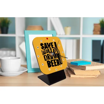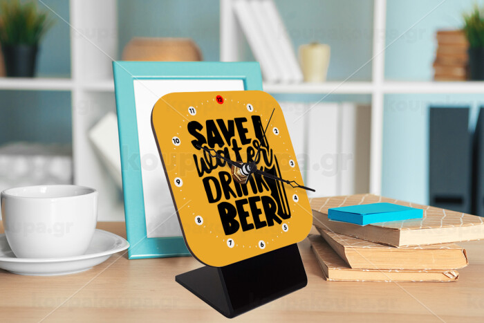 Save Water, Drink BEER, Quartz Wooden table clock with hands (10cm)